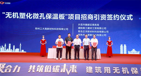 由鄭州大學教授、博士、高級工程師與鄭州工大高新材料科技有限公司(以下簡稱“工大科技”)組成的科研團隊,歷時多年攻堅克難、反復試驗,研發出世界上最輕的水泥制品“無機塑化微孔保溫板”,攻克了傳統保溫墻材“保溫”“防火”“安全”“環?!辈荒芗婢叩氖澜缧噪y題,填補了國內外市場空白。會上,“工大科技”的“無機塑化微孔保溫板”如一顆新星冉冉升起,成為會議的焦點?!盁o機塑化微孔保溫板”可資源利用,每年可消納15萬噸以上粉煤灰,實現工業固廢綜合利用。住房和城鄉建設部、國家發展改革委聯合印發《城鄉建設領域碳達峰實施方案》,明確提出,推動低碳建筑規?;l展,鼓勵建設零碳建筑和近零能耗建筑。建立完善節能降碳標準計量體系,制定完善綠色建筑、零碳建筑、綠色建造等標準。這為全國推廣“無機塑化微孔保溫板”提供了重要的政策支撐。據專業人士測算,僅河南市場每年需要“無機塑化微孔保溫板”達300萬立方米,市場容量近20億元;如果“無機塑化微孔保溫板”走向全國,市場容量可達上千億元;同時“無機塑化微孔保溫板”又能實現了建筑保溫、防火、安全、環保、與建筑同壽命,推動建筑節能產業高質量發展,前景非常廣闊。