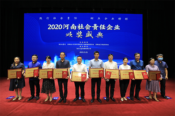 近日,“‘2020河南社會責任企業’推選活動”獲獎名單公布,我司榜上有名,榮獲年度企業獎。