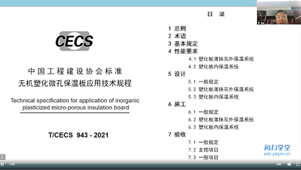 25日上午,中國工程建設標準化協會(簡稱:CECS)標準《無機塑化微孔保溫板應用技術規程》宣貫會以線上會議的形式成功舉辦。