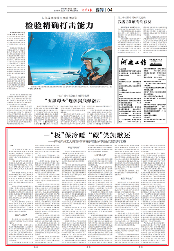 在省內,5月19日,新鄉市住房和城鄉建設局下發通知,明確禁止在外墻薄抹灰系統中使用巖棉板及無機滲透聚苯板,由此打響了河南省禁用巖棉等傳統外墻保溫材料的第一槍。7月19日,河南省政府辦公廳印發《河南省加快材料產業優勢再造換道領跑行動計劃(2022—2025年)》,這為工大科技優勢再造領跑行業提供了強有力的政策支持。
