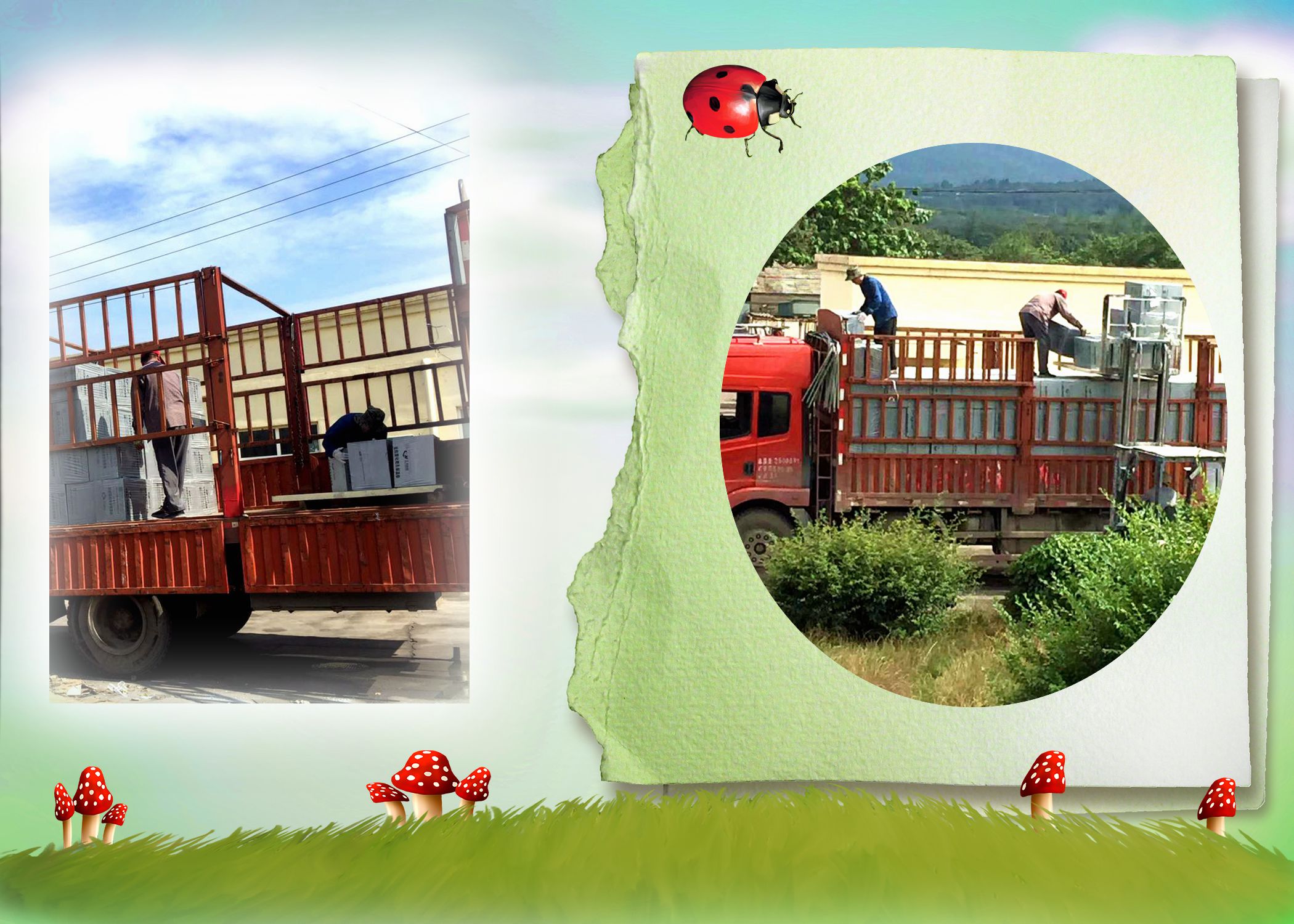 第一批發(fā)往滎陽東方百合機械的無機塑化微孔保溫板裝車。